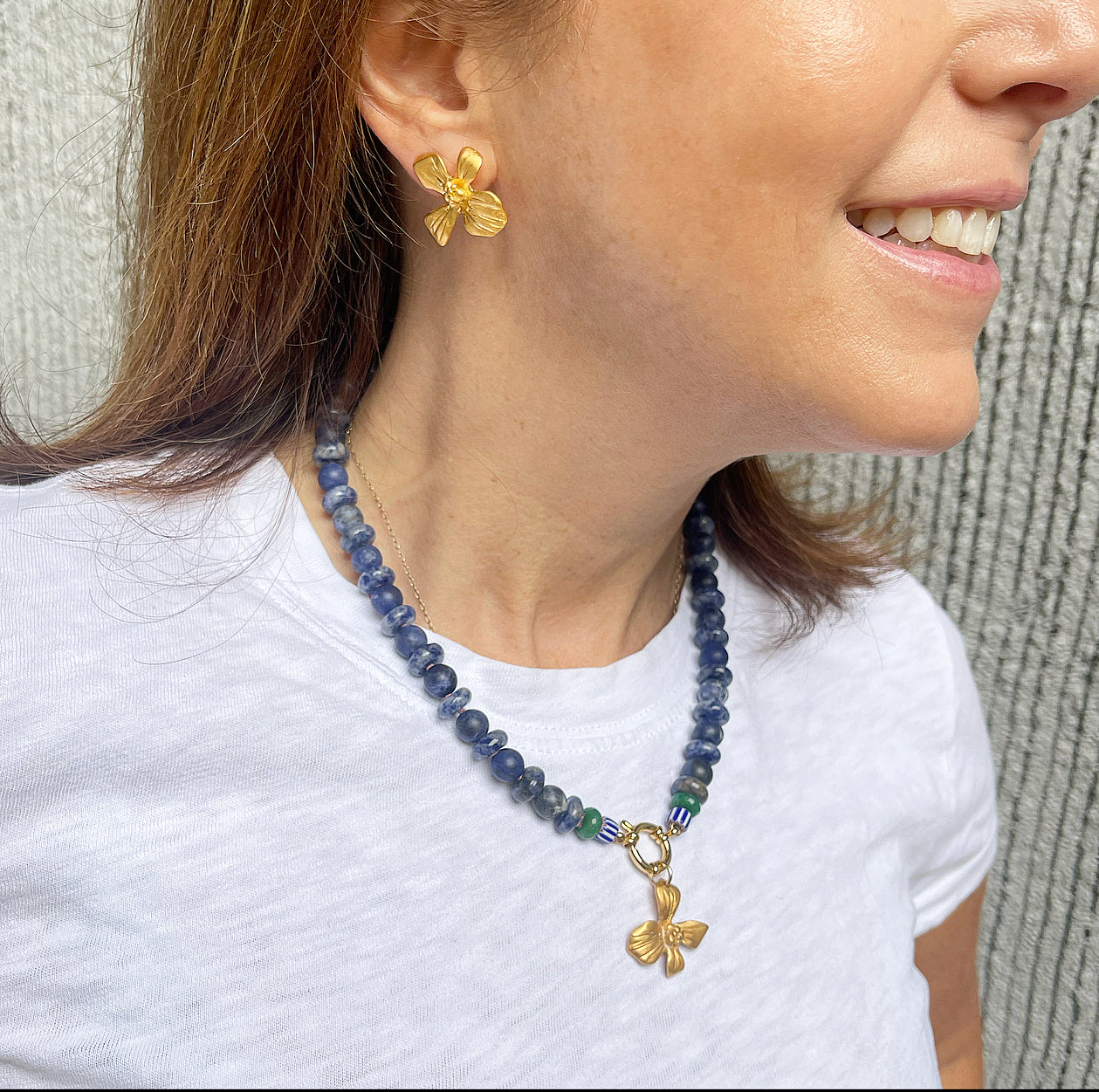 We've worn these earrings everywhere - literally. From family vacations to church, business meetings to parent-teacher conferences. Did we mention weddings?! These earrings were orginally designed and worn at Emily's wedding and inspired Casey's wedding jewelry, too! We may be biased, but we think they're pretty close to the perfect earring. Lightweight stud, substantial size, eye-catching color and amazing form. 24k gold-plated pewter with sterling silver posts and backs.