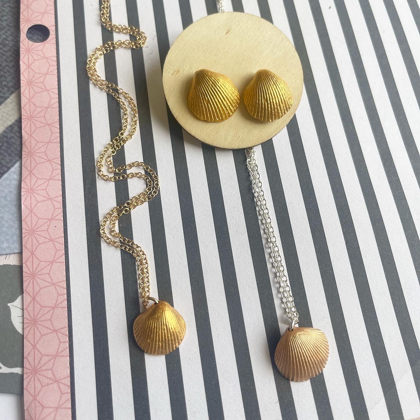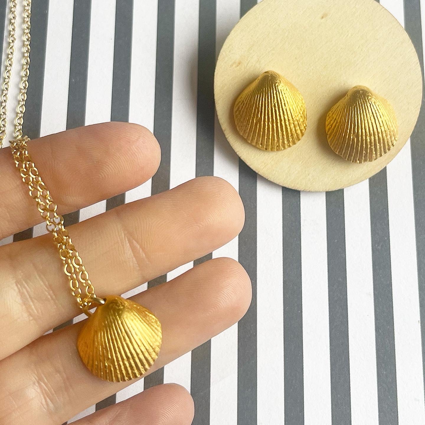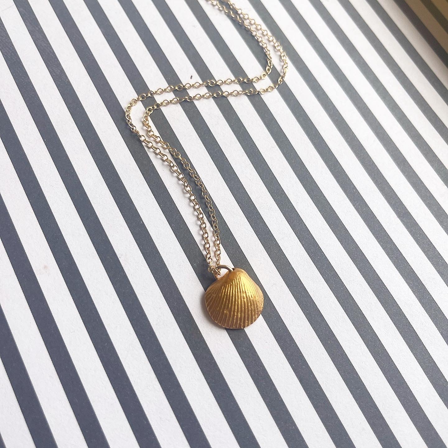 This gold shell necklace is cast from an actual shell I found walking one of my favorite beaches. Perfect simple charm necklace. Handmade, cast in pewter and plated in 24k gold, gold fill chain 16-17in.