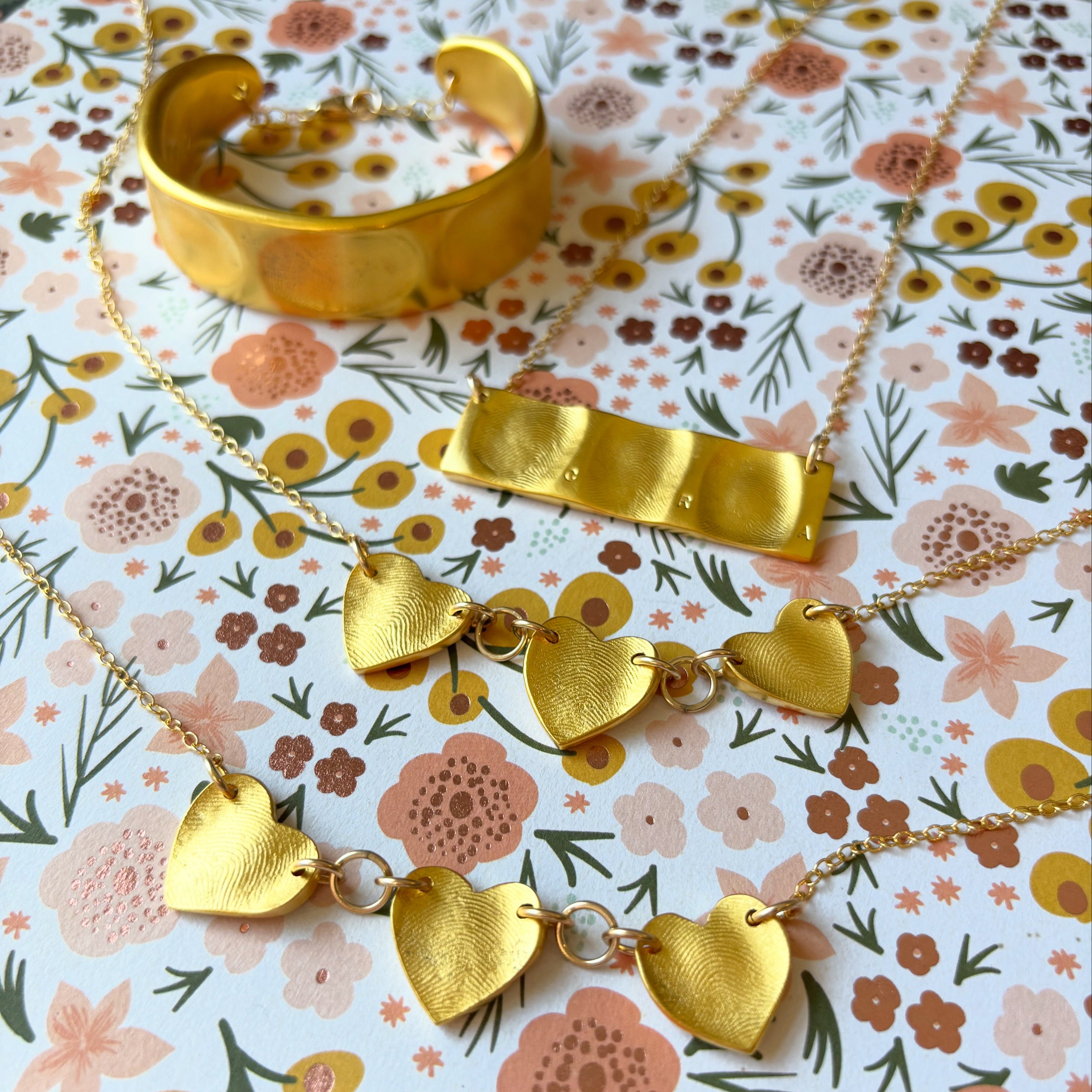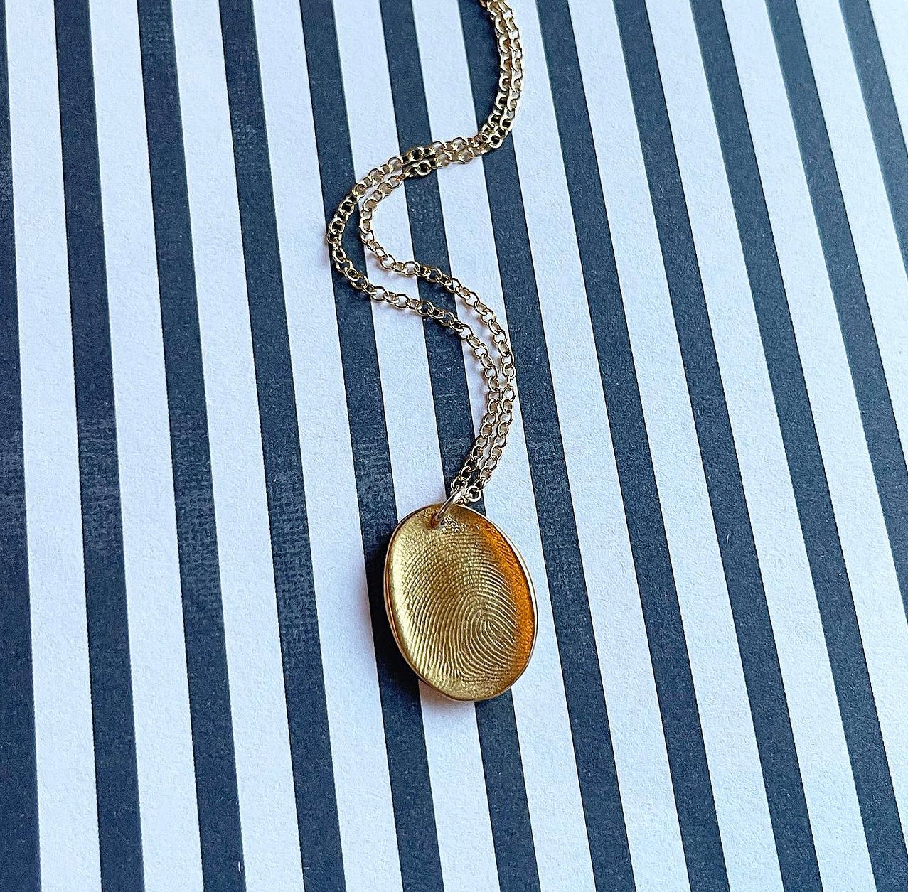 Prints of love are cast pewter keepsakes adorned with fingerprint impressions capturing a moment in time and lasting forever. The keepsakes range from $60-$195. All products are cast pewter with the option to 24k gold plate or rose gold plate. Products include necklaces, keychains, cufflinks, earrings, ornaments and paperweights. The fingerprints can be done at any age but the handprints are babies only (8 months and younger).