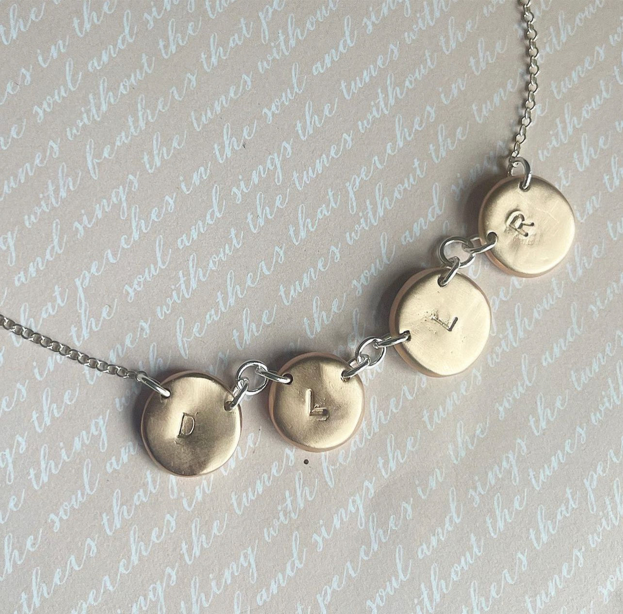 - Make sure to fill out the order form to pick your options: text on the back (name, initials or year), shape of charm, additional quantity.