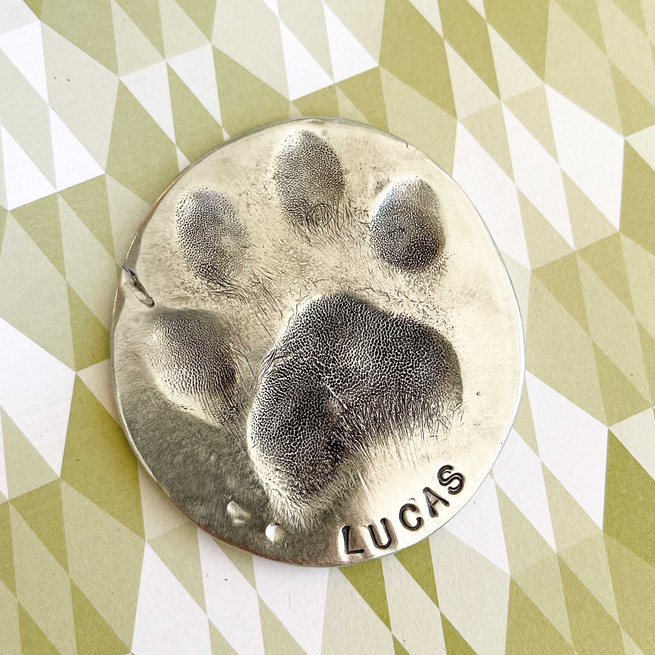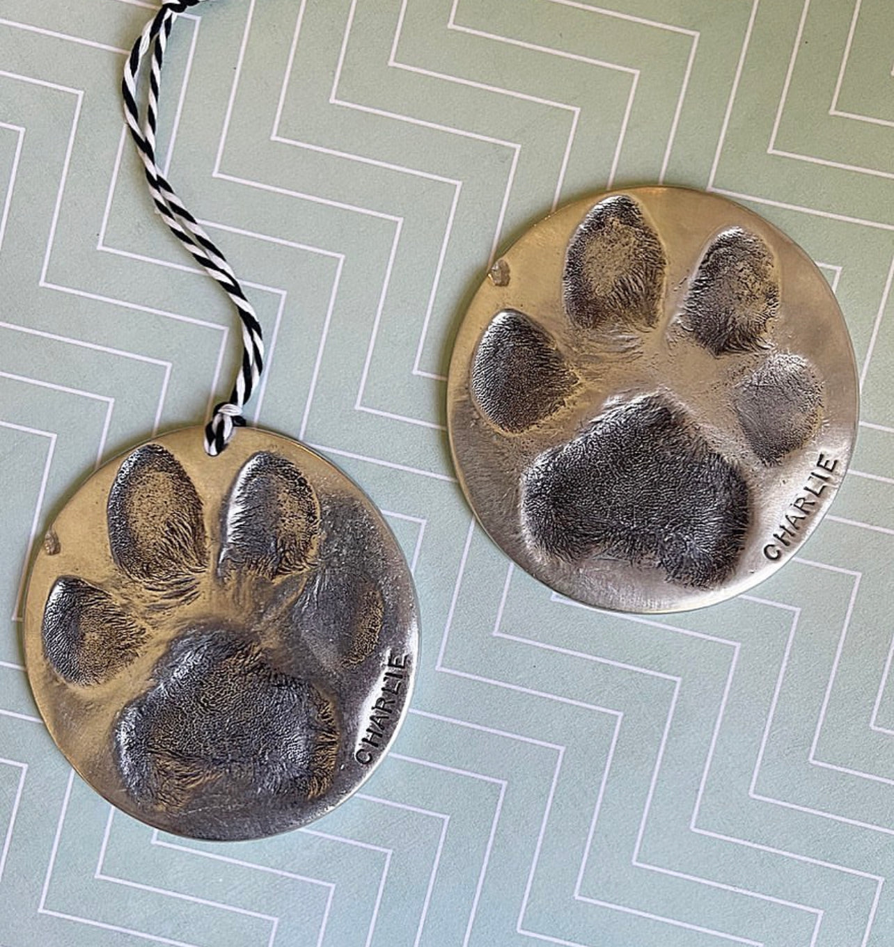 Price includes impression kit and cast pewter paw print ornament of your precious pet.